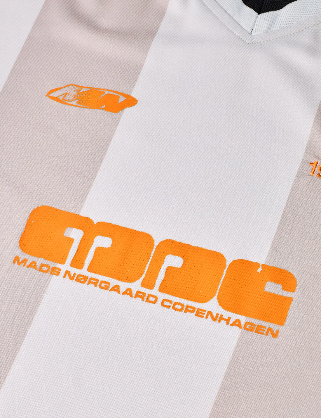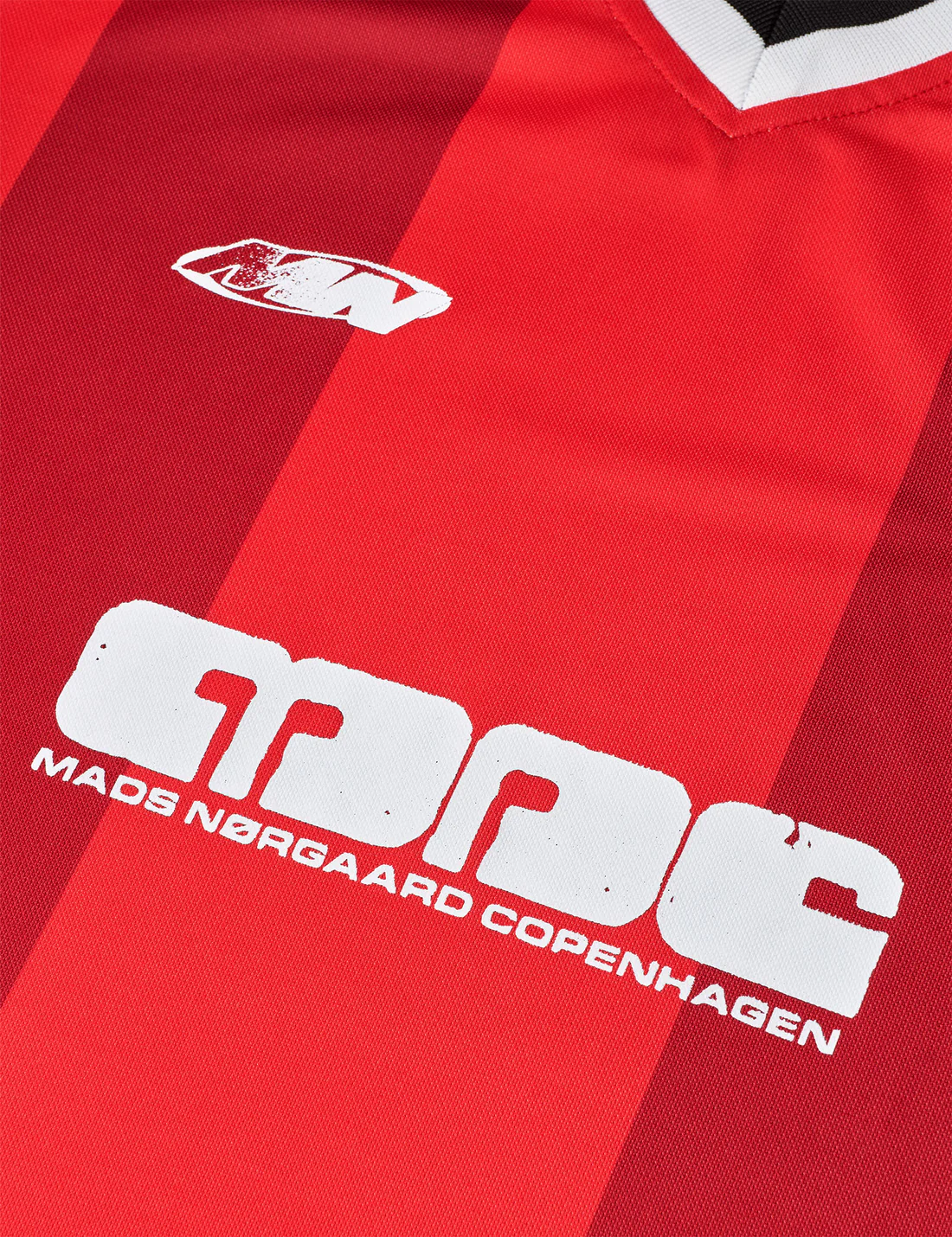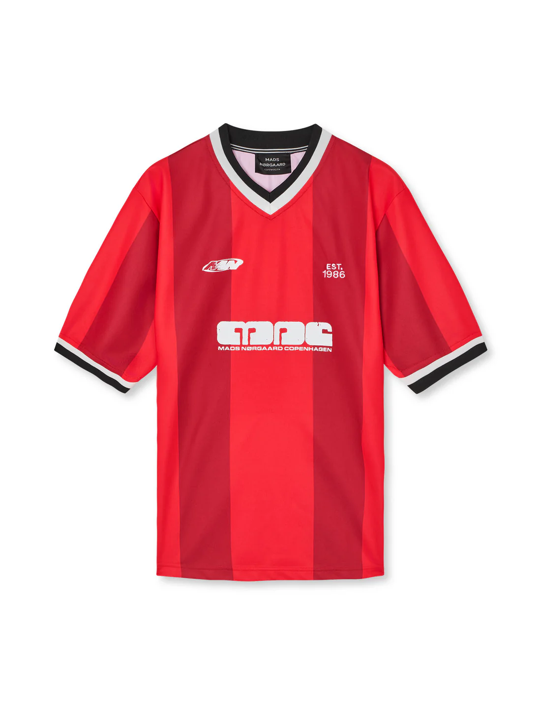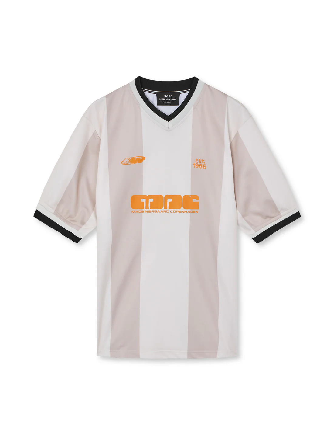 Fodbold inspireret T-shirt i reguler pasform med V-hals. Korte ærmer med kontrastkant. Stribet design og med logoprint foran.